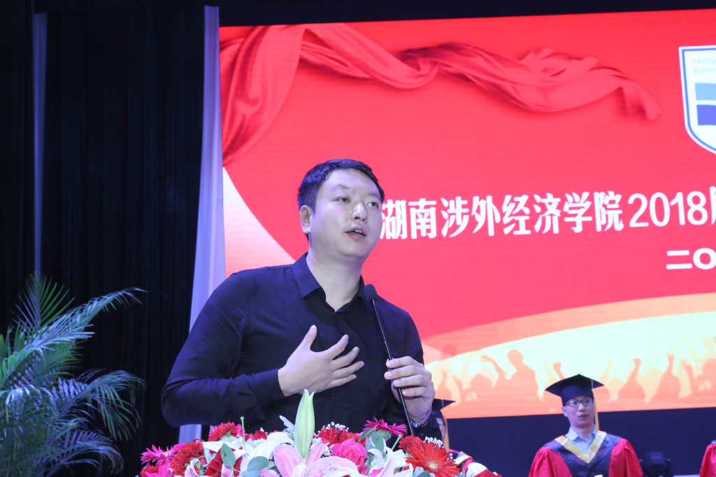 长沙八方云集生物科技有限公司执行董事,我校校友张鑫与毕业生们分享了他十多年来成长过程中的感悟,他告诉毕业生们:我们正处在中国崛起的崭新时代。在这个“大众创业、万众创新”的时代,我们有着优于以往任何时代的创新平台和国家支撑,同样也有着建设创新型国家的使命和责任。但是无论从事什么样的行业,我们都必须要永葆创新的激情,具备敢于打破常规的精神,跳出自我限制,才能在各自专业领域发挥创新潜能。他表示,“涉外”是每位校友的心灵家园,是感到疲惫时最温暖的地方,无论在任何岗位,大家都不能忘了“涉外精神”。